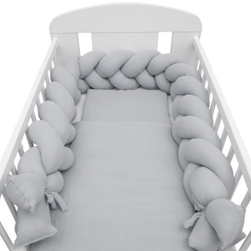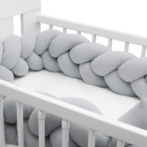 Hebučký a praktický pletený vrkoč českej značky New Baby je modernou alternatívou tradičného alebo vankúšového mantinelu nielen do detskej postieľky. Všetky tri pramene sú vyrobené z veľmi kvalitného bavlneného materiálu a antialergickej polyesterovej výplne a ručne spletené do vrkoča. Môžete ho použiť v postieľke, kolíske, kde chráni dieťa pred tvrdými priečkami postieľky a izoluje od studenej steny. Vo vašej posteli splní funkciu hniezdočka, kedy bábätko jednoducho oviniete pre ešte väčší pocit bezpečia a pohodlia. Mantinel sa prispôsobí každej postieľke a pomocou troch priložených stuh ho ľahko upevníte. Staršie dieťa ho môže využívať na zábavu alebo ako originálnu dekoráciu detskej izby.