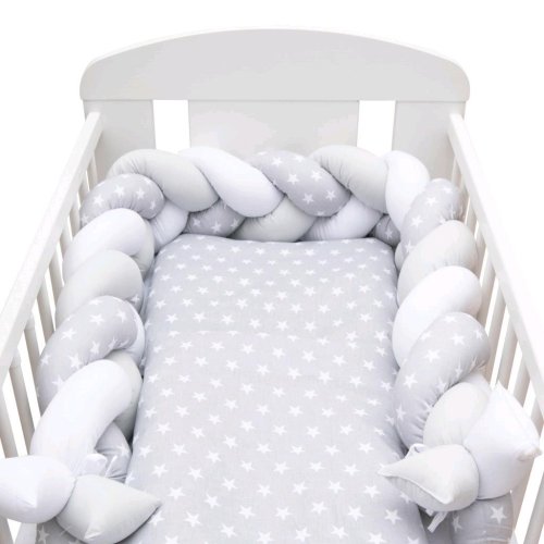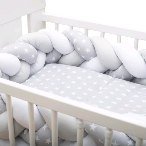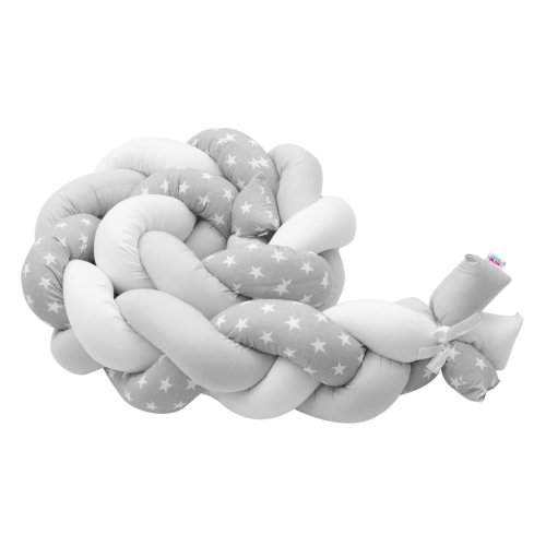 Hebučký a praktický pletený vrkoč českej značky New Baby je modernou alternatívou tradičného alebo vankúšového mantinelu nielen do detskej postieľky. Všetky tri pramene sú vyrobené z veľmi kvalitného bavlneného materiálu a antialergickej polyesterovej výplne a ručne spletené do vrkoča. Môžete ho použiť v postieľke, kolíske, kde chráni dieťa pred tvrdými priečkami postieľky a izoluje od studenej steny. Mantinel sa prispôsobí každej postieľke a pomocou troch priložených stuh ho ľahko upevníte. Staršie dieťa ho môže využívať na zábavu alebo ako originálnu dekoráciu detskej izby.