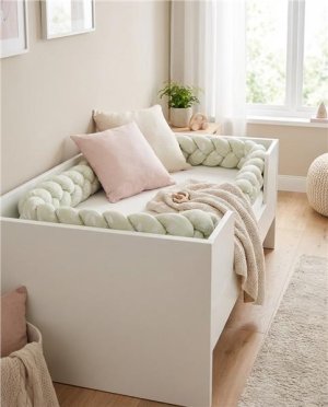 Hebučký a praktický pletený vrkoč českej značky New Baby je modernou alternatívou tradičného alebo vankúšového mantinelu nielen do detskej postieľky. Všetky tri pramene sú vyrobené z veľmi kvalitného bavlneného materiálu a antialergickej polyesterovej výplne a ručne spletené do vrkoča. Môžete ho použiť v postieľke, kolíske, kde chráni dieťa pred tvrdými priečkami postieľky a izoluje od studenej steny. Mantinel sa prispôsobí každej postieľke a pomocou troch priložených stuh ho ľahko upevníte. Staršie dieťa ho môže využívať na zábavu alebo ako originálnu dekoráciu detskej izby.