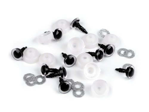 Pologuľaté oči s glitrovou dúhovkou sa krásne trblietajú. Umocní výraz vašich najrôznejších postavičiek či zvieratiek. Majú závit, na ktorý sa nasadí dúhovka, následne sa prevlečie materiálom, az druhej strany sa potom nacvakne poistka, ktorá oči bezpečne pripevní na miesto. Pokiaľ nebudete chcieť, aby sa oči trblietali, nemusíte dúhovku použiť, v tom prípade zostane dúhovka transparentná. 1 sada = 1 oko + 1 trblietavá dúhovka + 1 poistka Dĺžka skrutky je 1 cm. Na zacvaknutie poistky je nutné vynaložiť väčšiu silu.