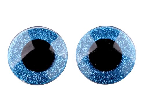 Oči veľké s glitrami s poistkou Ø40 mm - modrá (12 sada)