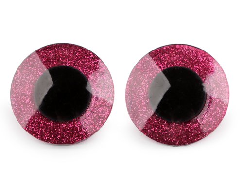 Oči veľké s glitrami s poistkou Ø40 mm - pink (12 sada)