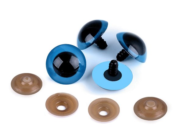 Veľké pologuľaté oči s farebnou dúhovkou využijete pri výrobe najrôznejších postavičiek či zvieratiek. Majú závit, ktorý sa prevlečie materiálom, az druhej strany sa potom nacvakne poistka, ktorá oči bezpečne pripevní na miesto. 1 sada = 1 oko + 1 poistka Dĺžka skrutky je 1,1 cm.