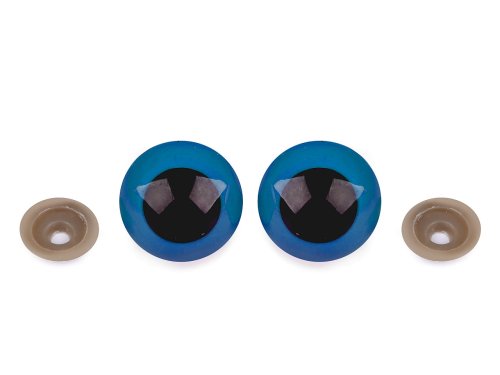 Veľké pologuľaté oči s farebnou dúhovkou použijete na výrobu najrôznejších postavičiek či zvieratiek. Majú závit, ktorý sa prevlečie materiálom, az druhej strany sa potom nacvakne poistka, ktorá oči bezpečne pripevní na miesto. 1 sada = 1 oko + 1 poistka Dĺžka skrutky je 1,3 cm.