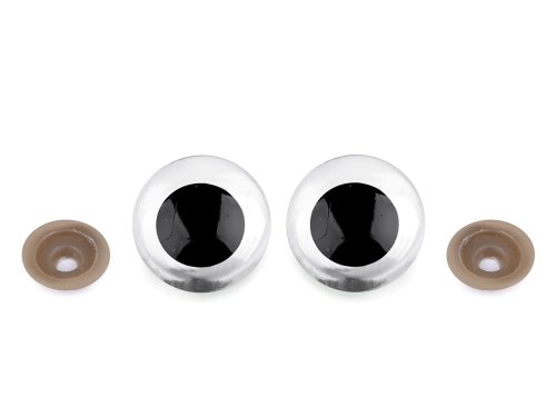 Veľké pologuľaté oči s farebnou dúhovkou použijete na výrobu najrôznejších postavičiek či zvieratiek. Majú závit, ktorý sa prevlečie materiálom, az druhej strany sa potom nacvakne poistka, ktorá oči bezpečne pripevní na miesto. 1 sada = 1 oko + 1 poistka Dĺžka skrutky je 1,3 cm.