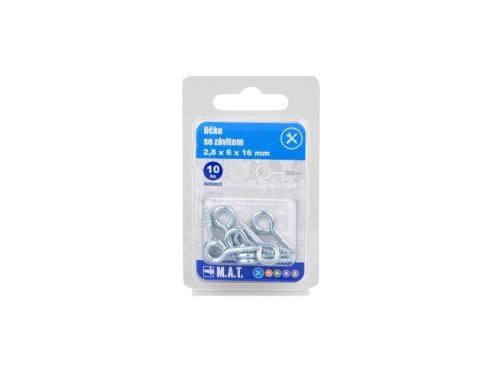 Zavreté očko so závitom 16 x 6 x 2,8 mm na uchytenie predmetov a bremien do rôznych materiálov.