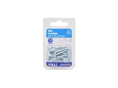 Zavreté očko so závitom 25 x 10 x 3,2 mm na uchytenie predmetov a bremien do rôznych materiálov.