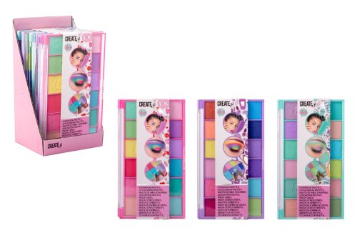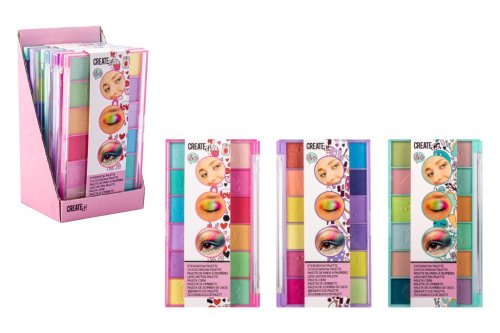 Paleta očných tieňov Crea it!!. Paleta obsahuje 12 farieb očných tieňov v troch farebných variáciách.