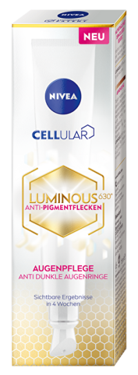 Tmavé kruhy pod očami? Zbavte sa ich behom pár sekúnd vďaka účinnej látke Luminous630, ktorá zjednocuje vzhľad pleti, a kofeínu, ktorý pleť osvieži. Tmavé kruhy môžu mať veľa príčin: nerovnováhu melanínu, dehydratovanú pleť, unavenú pleť. Nech už je u vás príčina akákoľvek, môžete jej následky v podobe tmavých kruhov pod očami ľahko odstrániť. Očný krém proti tmavým kruhom obsahuje účinnú látku Thiamidol, ktorá zjednocuje vzhľad pleti a redukuje pigmentové škvrny. Kyselina hyalurónová pleť intenzívne hydratuje a pomáha redukovať jemné linky a vrásky. Kofeín si zase poradí s únavou. Už za 8 týždňov používania sa zníži intenzita kruhov pod očami o 40%. Tak im dajte vale vďaka očnému krému proti tmavým kruhom Luminous630.