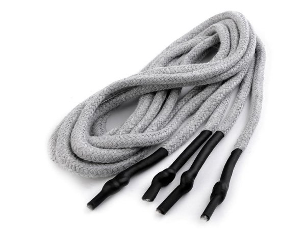 Odevná šnúra s koncovkami do kapucní, dĺžka 130-140 cm - šedá holubia (10 ks)