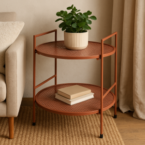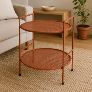 Praktický a štýlový stolík s moderným perforovaným designom.