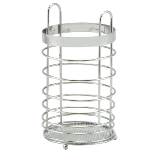 Kovový chrómovaný okrúhly odkvapkávač na príbory, varešky a iné. Priemer 11 cm a výška 20 cm. Nie je vhodné do umývačky riadu. EAN 5999558577179