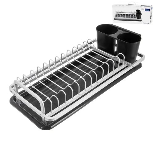 Odkvapkávač s plastovou táckou a odkvapkávačom na príbory je kombinovaný so stojanom z hliníka s eloxovanou (oxidovanou) povrchovou vrstvou, ktorá chráni povrch hliníka pred prirodzenou oxidáciou a koróziou.