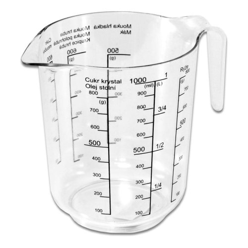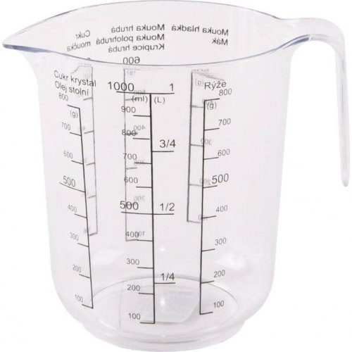 Odmerka s uchom a potlačou, ktorá vám pomôže namerať správne množstvo tekutín v ml, cukre, múky.