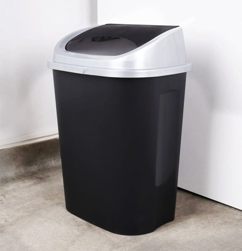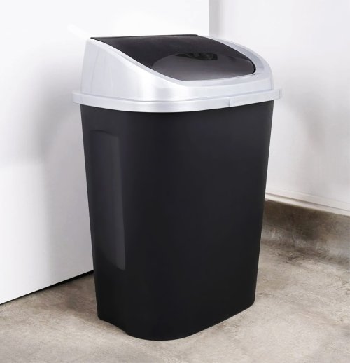 Tento odpadkový kôš je ľahký, ľahko prenosný a odolný, čo z neho robí ideálnu voľbu na každodenné použitie. Elegantná čierna farba so šedým rámčekom dodáva moderný a štýlový vzhľad, ktorý sa hodí do akéhokoľvek prostredia.