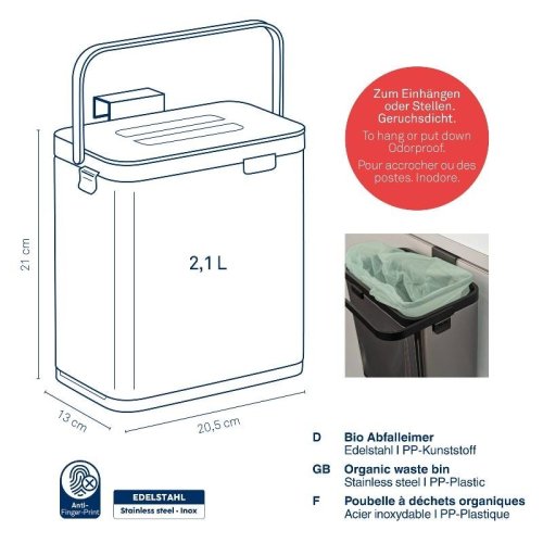 S organickým odpadkovým košom Plata máte spoľahlivého, udržateľného a praktického spoločníka do vašej domácnosti. Perfektné pre každodenné použitie - takže vaša kuchyňa zostane vždy uprataná!
