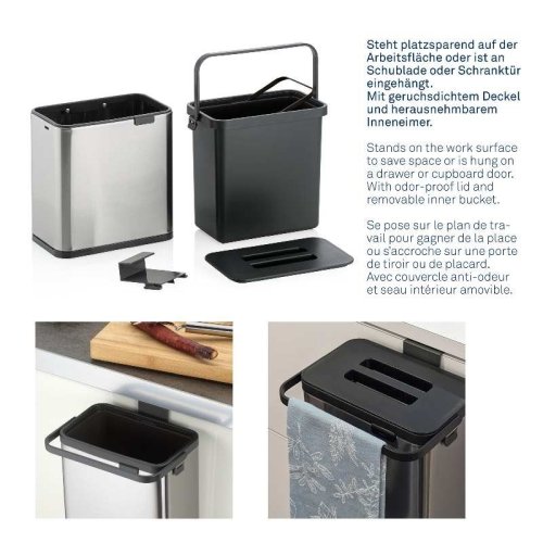 S organickým odpadkovým košom Plata v elegantnom matnom vzhľade vnesiete do svojej kuchyne poriadok a eleganciu. Tento premyslený kuchynský pomocník vám ponúka spojenie funkčnosti a moderného designu, ktoré vám znateľne uľahčí každodenný život.