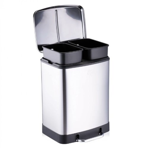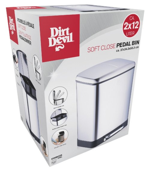 Nakladajte s odpadom vo vašej domácnosti vedome vďaka tomuto odpadkovému košu Dirt Devil s 2 priehradkami. Moderný šliapací odpadkový kôš má 2 samostatné nádoby s objemom 12 litrov. Vďaka tomu je triedenie odpadu oveľa jednoduchšie, pretože do jedného kontajnera môžete dať napríklad plast a do druhého kartón a papier. Vďaka nožnému pedálu v spodnej časti systému separácie odpadu môžete otvoriť veko bez použitia rúk. Veko systému separácie odpadu je vybavené mechanizmom soft-close. To znamená, že veko sa zatvára ticho a ticho a zápach tak rýchlo neuniká. Pedálový odpadkový kôš je vyrobený z nerezovej ocele striebornej farby. Tento materiál je známy tým, že je pevný a odolný, ale tiež sa ľahko udržuje v čistote.