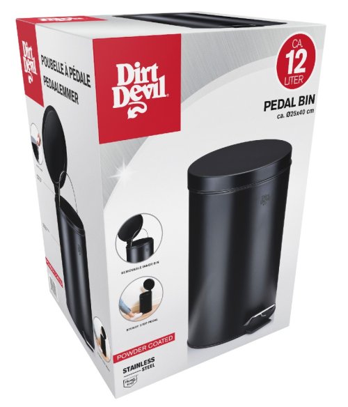 Nenechávajte svoje odpadky ležať náhodne, ale ukladajte ich prehľadne do tohto praktického pedálového koša Dirt Devil s objemom 12 litrov. Vedierko vyrobené z odolnej čiernej nerezovej ocele sa perfektne hodí takmer ku každému dekoru a je vhodné do kuchyne, kúpeľne alebo kancelárie. Nožný pedál v spodnej časti vedra uľahčuje používanie, pretože môžete otvoriť veko bez toho, aby ste sa ho dotkli. Mechanizmus mäkkého zatvárania navyše zaisťuje tiché otváranie a zatváranie veka a zároveň udržuje nežiaduce pachy vo vnútri. Robustná čierna nádoba z nerezovej ocele odolá každodennému používaniu a ľahko sa čistí. Vyprázdnenie pedálového koša je veľmi jednoduché: vyberte vnútorné vedro, zlikvidujte odpad a znovu vložte vnútorné vedro.