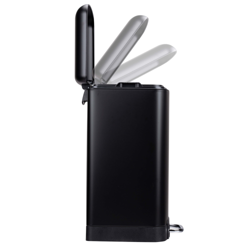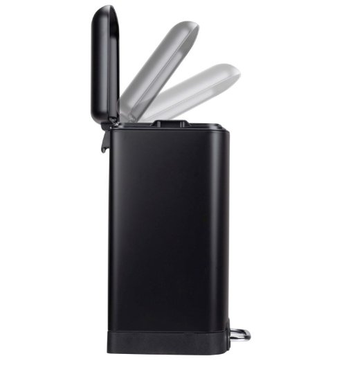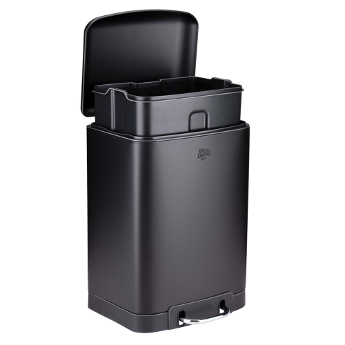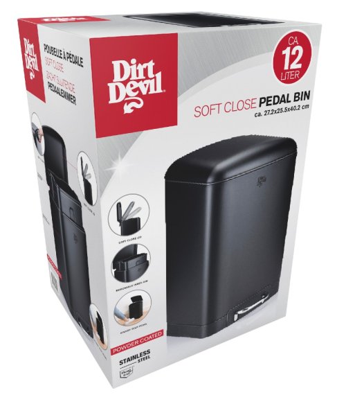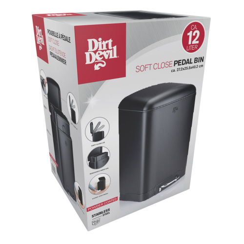 Nehádžte svoje odpadky len tak niekam, dajte ich do tohto priestranného pedálového koša Dirt Devil s objemom 12 litrov. Vedierko vyrobené z odolnej čiernej nerezovej ocele sa perfektne hodí takmer do každého interiéru a je vhodné na použitie v kuchyni, kúpeľni alebo kancelárii. Vďaka praktickému nožnému pedálu v spodnej časti vedra otvorte veko bez toho, aby ste sa ho dotkli. Pedálový kôš je tiež vybavený mechanizmom soft-close, vďaka ktorému je otváranie a zatváranie veka nehlučné a zabraňuje úniku nepríjemných pachov z koša. Robustná čierna nádoba z nerezovej ocele odolá každodennému používaniu a ľahko sa čistí. Vyprázdňovanie pedálových košov je veľmi jednoduché: vyberte vnútorný kôš, zlikvidujte odpad a znova vložte vnútorný kôš.