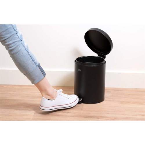 Tento kompaktný 5-litrový pedálový odpadkový kôš od Dirt Devil je praktickým doplnkom do vašej kúpeľne alebo toalety. Ideálne na uloženie vložiek, tampónov, plienok alebo iných materiálov, ktoré by sa nemali splachovať do záchodu. Malá nádoba s objemom 5 litrov uľahčuje výmenu tejto malej nádoby a udržuje ju dlhšie čistú. Šliapací kôš má vyberateľné plastové vnútorné vedro, do ktorého môžete zavesiť malé vrece na odpadky. Umiestnenie vrecka na odpadky do vnútorného koša a sklopenie vyčnievajúcej časti na vonkajšej strane koša bude vyzerať elegantne a udrží vrecko na odpadky dlhšie čisté. Keď je odpadkové vrece plné, môžete vnútorný kôš ľahko vybrať pomocou kovovej rukoväte. Ako názov napovedá, tento malý odpadkový kôš otvoríte stlačením pedála nôh, takže sa nemusíte ohýbať. To je obzvlášť praktické, pretože nádoba je veľmi malá a skladná a je určená na drobný odpad. Pedálový kôš má tiež kovovú slučku na zadnej strane, ktorá vám umožní ho zdvihnúť bez toho, aby ste sa dotkli samotného vedra.