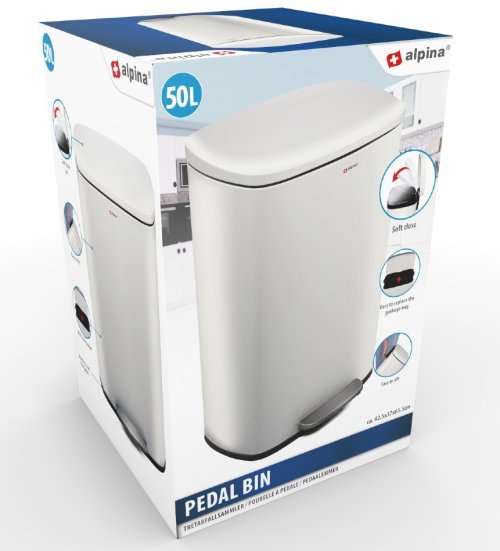 Či už v kúpeľni alebo v kuchyni tento odpadkový kôš sa vďaka svojmu jednoduchému, ale elegantnému dizajnu skvele hodí do každej miestnosti. Má kapacitu cca 50 litrov. Plastová vložka uľahčuje vyprázdňovanie a čistenie vedra. Nožný pedál umožňuje otvoriť kôš bez námahy bez toho, aby ste sa museli ohýbať. Mechanizmus mäkkého zatvárania zabraňuje hlasnému buchnutiu. Rozmery: 42,5x37,2x65,7cm