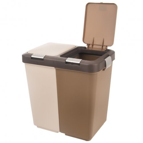 Odpadkový kôš DUO na triedenie odpadu s otváraním pomocou klipu na veku Dva samostatné koše spojené plastovou obručou Vhodné na triedenie odpadu Materiál: plast PP Rozmery: 34 x 27 x 50 cm Objem 2x20 l (40 …