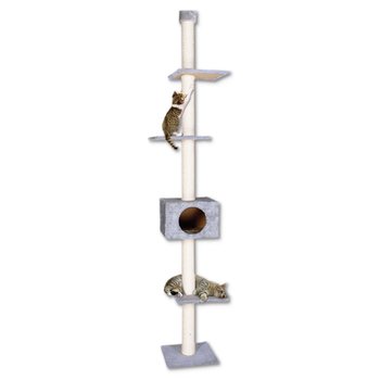 Zostava zložená z dosiek a búdičky s hebkým, plyšovým poťahom a stĺpikov (priemer 8,5 cm), ktoré sú omotané sisalovým pevným povrazom, takže slúži mačke na škrabanie.