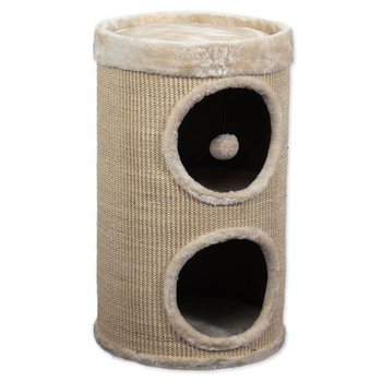 Odpočívadlo s plyšovým poťahom v tvare suda s hračkou.