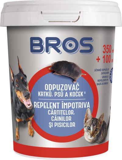 Odpudzovač krtkov, psov a mačiek vo forme prášku zaisťuje dokonalú ochranu záhrad a detských ihrísk. Zápach účinne odpudzuje zvieratá, ale nie je nepríjemný pre ľudí. Za priaznivých poveternostných podmienok (málo zrážok) si prípravok zachováva účinnosť po dobu zhruba 2 mesiacov. Návod na použitie na odpudenie krtkov: do krtského tunela nasypte niekoľko polievkových lyžíc (5 polievkových lyžíc = 20 g produktu). Celú oblasť je možné ochrániť tak, že aplikujete prípravok od stredu postihnutej oblasti a každý druhý deň budete chránenú oblasť rozširovať. Na odpudenie mačiek a psov: naneste 2 polievkové lyžice na 1 m2. V miestach so silnejším zaťažením naneste väčšie množstvo prípravku. Balenie: 350 ml + 100 ml zadarmo.
