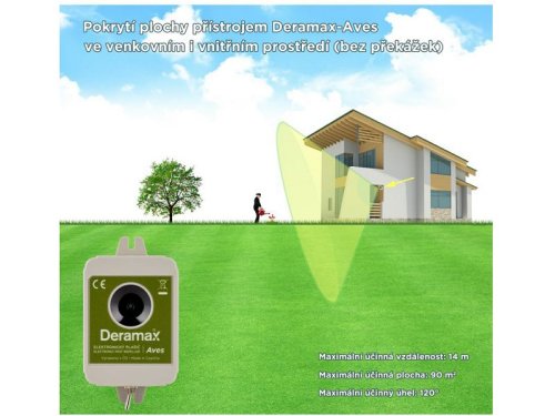Plašič generuje signál v subultrazvukovej oblasti (oblasť vysokofrekvenčného hluku). Z hľadiska vplyvu na človeka plašič Deramax-Aves neruší svoje okolie nepríjemným hlukom a spĺňa zákonné limity stanovené pre max. hladinu vysokofrekvenčného hluku aj ultrazvuku. Vplyv na domáce a hospodárske zvieratá: Tento plašič (odpudzovač) má v rámci svojho účinného dosahu negatívny vplyv aj na domáce mačky a psy. Nie je ale nutné riešiť nejaké zvláštne opatrenia strán domácich zvierat. Úplne postačuje, keď má domáce zviera možnosť voľne odísť z priestoru chráneného prístrojom. Plašič teda vášmu domácemu zvieraťu neublíži, len sa bude zviera tomuto priestoru vyhýbať. Vždy ale dbajte, aby domáce zviera malo možnosť odísť z chráneného priestoru, a nikdy nesmie byť tento typ plašiča použitý proti zvieraťu zavretému v koterci a pod.