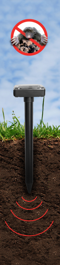 Odpudzovač hlodavcov CTRL-MO101S účinne odpudzuje krtky, myši, hraboše a zmije, odpudzovač vydáva vibrácie a zvuky.