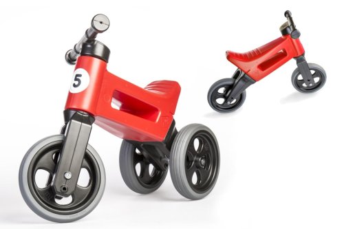 A jedééém! FUNNY WHEELS je originálne české odrážadlo, ktoré dokáže rásť s vašim dieťaťom. Vzhľadom na to, že môžete vymeniť dve zadné kolesá za jedno a nastaviť jeho výšku, nemusíte kupovať každý rok nové odrážadlo. FUNNY WHEELS vám vydrží, pokiaľ nebudete kupovať prvé kolo. Hlavné výhody FUNNY WHEELS: 2v1 – behom pár minút zmeníte trojkolesové odrážadlo na dvojkolesové 2 výškové polohy – nastavíte vpredu aj vzadu (rozdiel 3 cm) Tiché pneumatiky, ktoré nešmýkajú na výber v 6 farbách – zelená, červená, modrá, ružová, oranžová, šedá cool design bezpečné aj pre tých spoji umývateľné vlažnou vodou a mydlovými čistiacimi prostriedkami kompletne vyrobené v Českej republike FUNNY WHEELS rastie rovnako, ako váš drobček. Ten začne jazdiť na malom trojkolesovom odrážadle, až sa vytiahne, jednoducho FUNNY WHEELS zdvihnete o 3 cm vyššie a ide sa ďalej. Až príde čas trénovať balans, jednoducho vymeníte dve zadné kolieska za jedno a dieťa sa môže začať pripravovať na jazdu na bicykli. Ako presne to funguje, vidíte na videu. Odstrkovadlo je pritom stabilné (vo variante s tromi kolesami). Vidlica má obmedzený rozsah otáčania a riadidlá sa tak nemôžu pretočiť. Rukoväte riadidiel sú na konci rozšírené, a tým chránia detské ruky pred poranením.