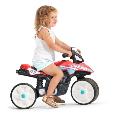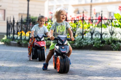 Odráždilo Racing team červené - je závodné odrážadlo pre najmenšie deti. Vhodné už od 2 rokov Veľkosť odrážadla 75×40×51cm – nostnosť max. 30kg. Odrážadlo má extra tiché kolieska. Vybené vo Francúzsku z vysoko oddoleného a kvalitného z 50% recyklovaného plastuTestované podľa európskych noriem - vyrobené vo Francúzsku