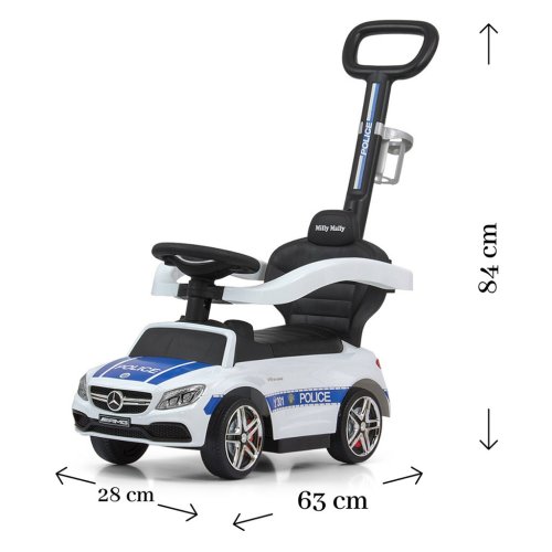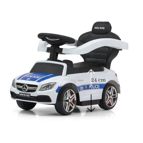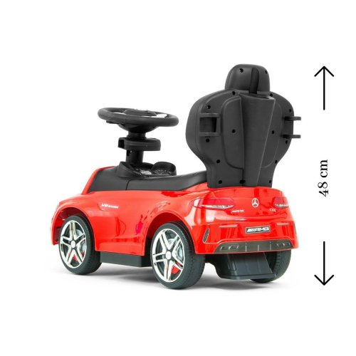 Detské odrážadlo s vodiacou tyčou Mercedes Benz AMG C63 Coupe je vyrobené z kvalitného plastového materiálu. Jeho športový vzhľad upúta pozornosť nielen každého dieťaťa, ale aj rodičov. Váš malý pretekár či pretekárka sa v ňom bude cítiť ako v naozajstnom mercedesu. Odrážadlo pomáha rozvíjať motorické schopnosti dieťaťa a zaručí mu veľa zábavy a srandy. Jezdítko má na volante efektné húkačku a dve tlačidlá s melódiami. Odrážadlo je určené ako pre najmenšie deti, ktoré vedia sedieť, tak aj pre deti, ktoré sa už naučili chodiť. S autíčkom si deti užijú veľa zábavy a zábavy pretože má nenapodobiteľný vzhľad skutočného Mercedesu, komfortné široké sedadlo s úložným priestorom, volant, kvalitné plastové kolesá a pohodlnú a zároveň pevnú vodiacu tyč s držiakom na nápoje, ktorú možno riadiť autíčko. Vodiaca tyč, opierky na ruky a podnožky je možné zložiť, a tým dieťa využije autíčko ako klasické odrážadlo. Batérie nie sú súčasťou balenia (2x AA 1.5V).