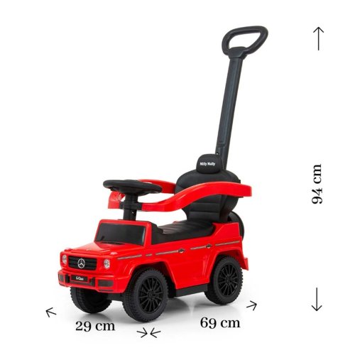 Detské odrážadlo s vodiacou tyčou MERCEDES G350d je vyrobené v licencii koncernu MERCEDES. Váš malý pretekár či pretekárka sa v ňom bude cítiť ako v naozajstnom džípe. Odrážadlo je vyrobené s dôrazom na každý detail a kvalitu použitých materiálov. Jeho vzhľad upúta pozornosť nielen každého dieťaťa, ale aj rodičov. Odrážadlo pomáha rozvíjať motorické schopnosti dieťaťa a Váš malý pretekár či pretekárka si s ním užije množstvo zábavy a zábavy. Autíčko má na trojramennom volante tlačidlá vydávajúce rôzne melódie, zvuk motora alebo húkačku. Je určené ako pre najmenšie deti, ktoré už vedia sedieť, tak aj pre deti, ktoré sa už naučili chodiť. Odrážadlo má otočné predné kolesá, široké a komfortné sedadlo s úložným priestorom a pohodlnú a zároveň pevnú vodiacu tyč, ktorú je možné odrážadlo riadiť. Vodiacu tyč, opierky na ruky a podnožky je možné zložiť a tým dieťa využije autíčko ako klasické odrážadlo. Batérie nie sú súčasťou balenia (2x AA 1.5V).