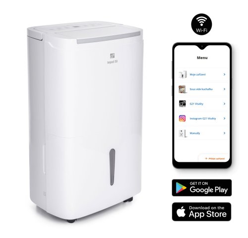 Odvlhčovač vzduchu sme vybavili nielen intuitívnym dotykovým ovládaním , ale aj WiFi . Ovládať ho tak môžete aj na diaľku – prostredníctvom chytrej aplikácie G21 Smart Home ho spustíte odkiaľkoľvek a kedykoľvek.