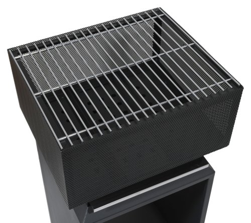 Štvorcová konštrukcia ohniska sa vyrába z kvalitnej ocele s vysokoteplotným čiernym náterom . Jeho strany sú perforované a poskytnú vám unikátny pohľad na horiaci oheň. Dolnú časť využijete ako úložný priestor na drevo.
