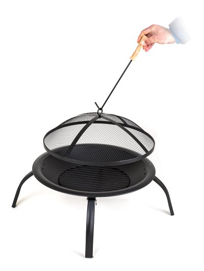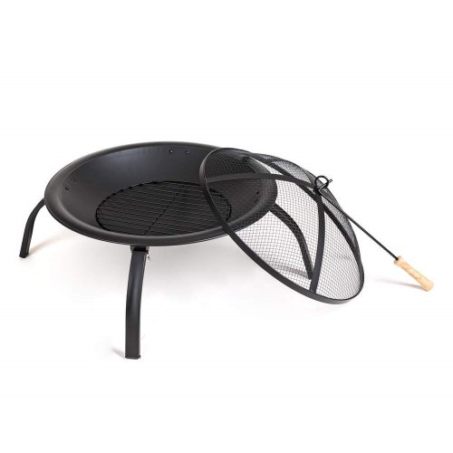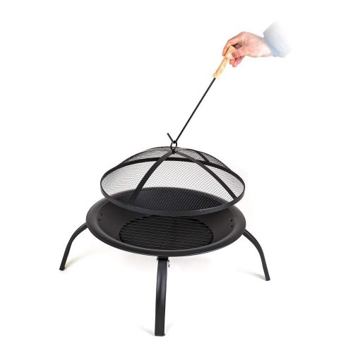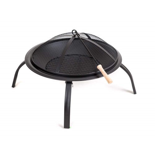 Prenosné kovové záhradné ohnisko, plochého typu, so zabudovaným roštom. S čiernou povrchovou úpravou odolávajúcou vysokým teplotám. Ohnisko je vybavené sieťovým poklopom proti odlietaniu drobných uhlíkov. Ohnisko je usadené na ľahko zložiteľných nôžkach, umožňujúcich úsporné skladovanie.