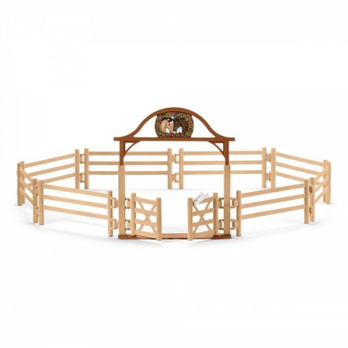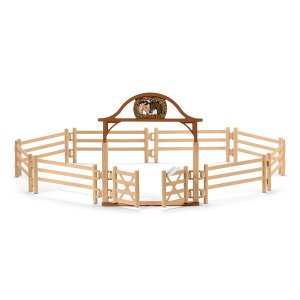 Kedykoľvek dorazia do Lakeside noví kone alebo poníky, najskôr sa privedú do ohrady. Ohrada pre kone so vstupnou bránou je skvelý doplnok sveta Horse Club. Ploty sa dajú spájať aj s ostatnými plotmi ďalších produktov (Výbeh pre kone, Stajne). Hlavná brána je otváracia. Všetky figúrky Schleich sú modelované s dôrazom na detaily, ručne maľované opatrne a poskytujú pedagogickú hodnotu. Obsahuje: 8x plotová časť, 1x vstupná brána, 1x samolepka. Rozmer balenia: 19 x 11,5 x 6,8 cm. Nevhodné pre deti do 3 rokov. Odporúčaný vek: 5-12.