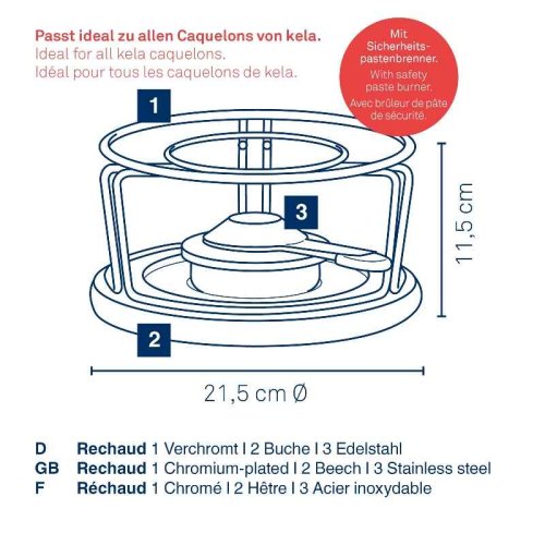 - materiál: bukové drevo/ chrómovaný kov/nerezová oceľ 18/10- výška: 11,5 cm- priemer: 21,5 cm- sada obsahuje:- 1x horák z nerezovej ocele- 1x stojan- 1x drevený podnos- séria: Natura- značka: KELA
