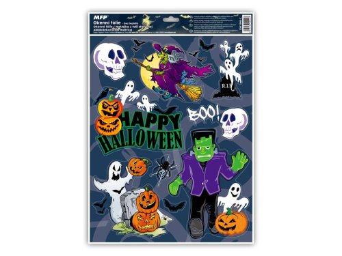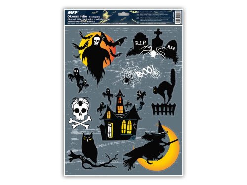 Okenné fólie Halloween s glitrom. Vyzdobte si okno týmito strašidelnými samolepkami na okno. Vytvorí Vám tú pravú halloweensku atmosféru. Vhodné sú akékoľvek hladké plochy, napríklad sklo, výlohy, zrkadlá alebo kachličky. Čisté, bez lepidla a opakovane použiteľné.NÁVOD:1. Zlúpnite z podložky obrázok a umiestnite na čisté, prípadne navlhčené sklo stranou, ktorá bola na podložke. 2. Obrázok elektrostaticky pr ilne.3 . Fólia sa ľahko zlúpne a dá sa premie stit.4 . Po použití je možné ich uložiť na pôvodný podkladový papier a uskladniť na ďalšiu sezónu. Nie je možné vybrať druh, dodávame podľa skladovej dostupnosti.