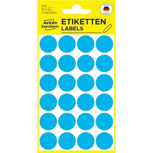 Okrúhle značkovacie etikety modrej farby Etikety sú dostupné v troch veľkostiach a rôznych farbách Vhodné pre ručný popis Farba: modré Rozmery etikiet, štítku: priemer 18 mm Počet etikiet, štítkov na archu: …