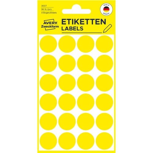 Okrúhle značkovacie etikety žltej farby Etikety sú dostupné v troch veľkostiach a rôznych farbách Vhodné pre ručný popis Farba: žlté Rozmery etikiet, štítku: priemer 18 mm Počet etikiet, štítkov na archu: …