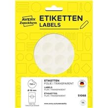 Okrúhle uzatváracie etikety Avery, 18 mm, číre, 720ks