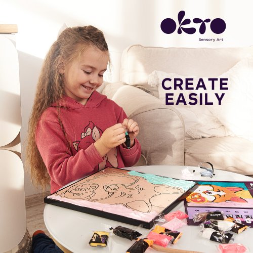 OKTO Líška výtvarná sada. Samotvrdnúca hmota (air clay), maľovanie prstami. Veľkosť plátna 29x29 cm. Obsah balenia - plátno, obrázkový návod, tvarovacie nástroje, samotvrdnúca hmota.