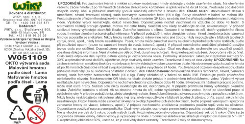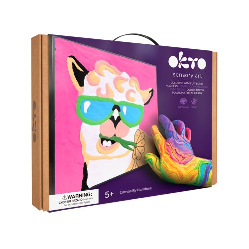 OKTO Maľovanie hmotou podľa čísel "Lama". Veľkosť plátna 29x29 cm. Obsah balenia - plátno, obrázkový návod, modelovací nástroj, sada farebných tvarovacích zmesí 14 ks.