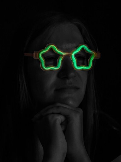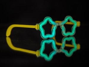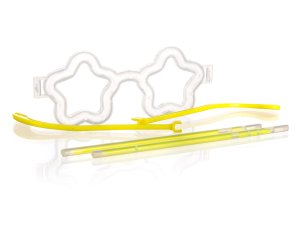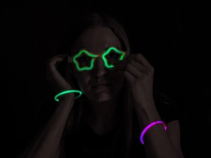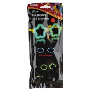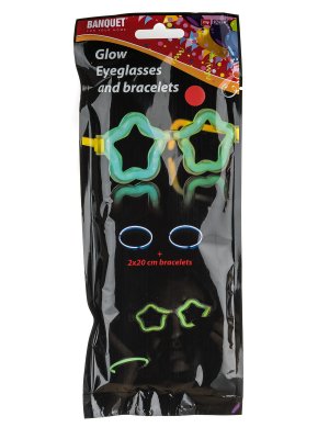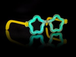 Fluorescenčné okuliare v tvare hviezdy, ktoré vás alebo vaše deti ozdobia na každej párty. Sada obsahuje: 1 ks čiernych okuliarových rámov, 2 ks fluorescenčných tvarovateľných náramkov v piatich farbách. K rozsvieteniu okuliarov dôjde pri tvarovaní fluoresenčných náramkov do tvaru okuliarov a dĺžka svitu je cca 4 hodiny.