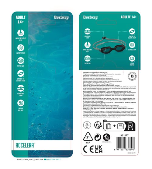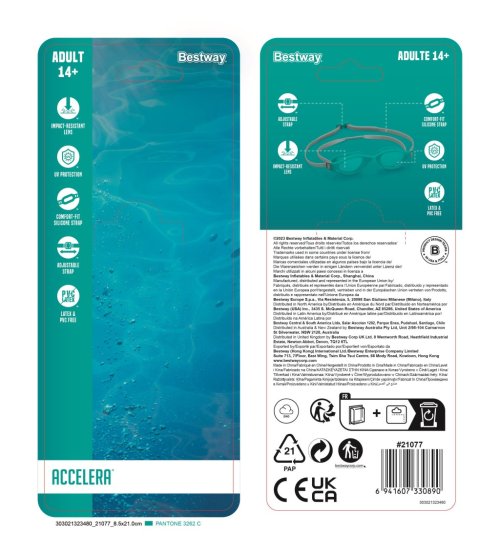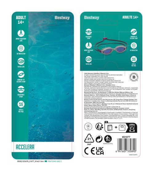Moderné plavecké okuliare s bezpečnostnými šošovkami. Pohodlné tvarované košíčky na oči pre dokonalú tesnosť. Upraviteľný opasok pre bezpečné a pohodlné nosenie. 3 rôzne farebné prevedenia. Pre deti od 14 rokov.