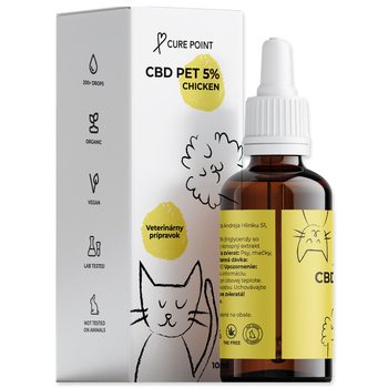 • CBD olej Cure Point je zároveň v Českej republike a na Slovensku registrovaný ako veterinárny prípravok .